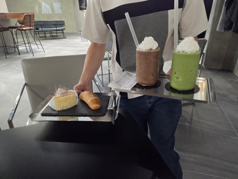 주문을 데스크에서 하고, 부르면 직접 가서 가져와야 되는 셀프시스템이다. 물론 다 먹은 후에도 쟁반들고 데스크로 갖다놔야 되는 시스템.