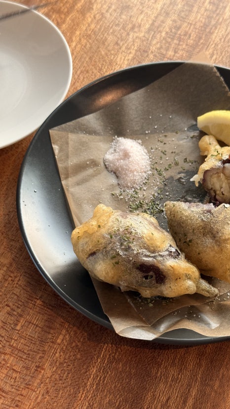 이곳은 단순히 맥주를 마시는 공간을 넘어, 바다와 함께 여유를 만끽할 수 있는 분위기가 매력적인 장소였는데요. 특히 제가 주문했던 맥주와 함께 나온 가지 튀김은 꽤 독특하면서도 잘 어울리는 조합이었어요. 고베에서 색다른 미식 경험을 찾는 분들께 꼭 추천드리고 싶은 곳입니다.