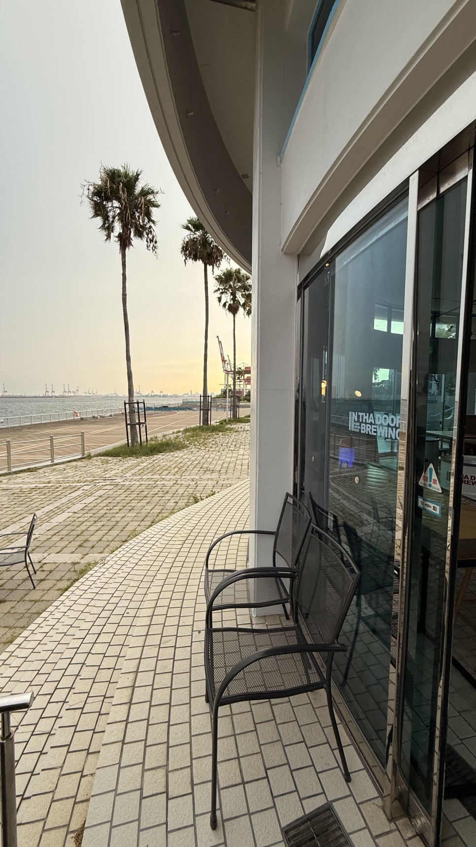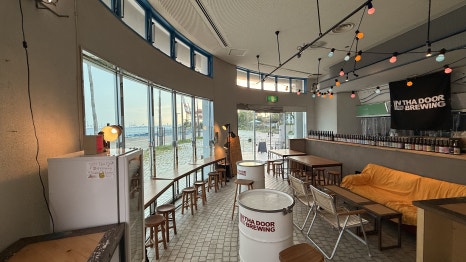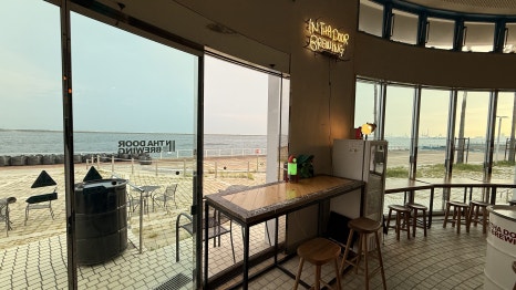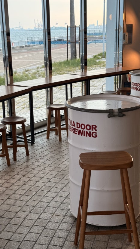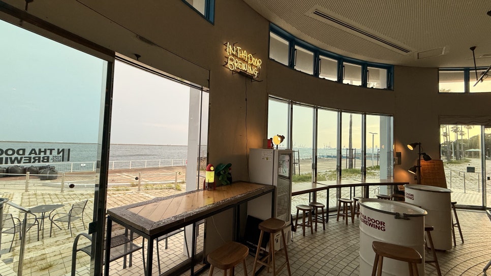 인타도어 브루잉은 고베 항구 근처에 자리 잡고 있어 바다를 한눈에 바라볼 수 있습니다. 가게에 들어서자마자 통창 너머로 보이는 바다 풍경이 인상적이었고, 저녁 무렵 방문하면 해가 서서히 지는 석양과 함께 맥주를 즐길 수 있습니다.