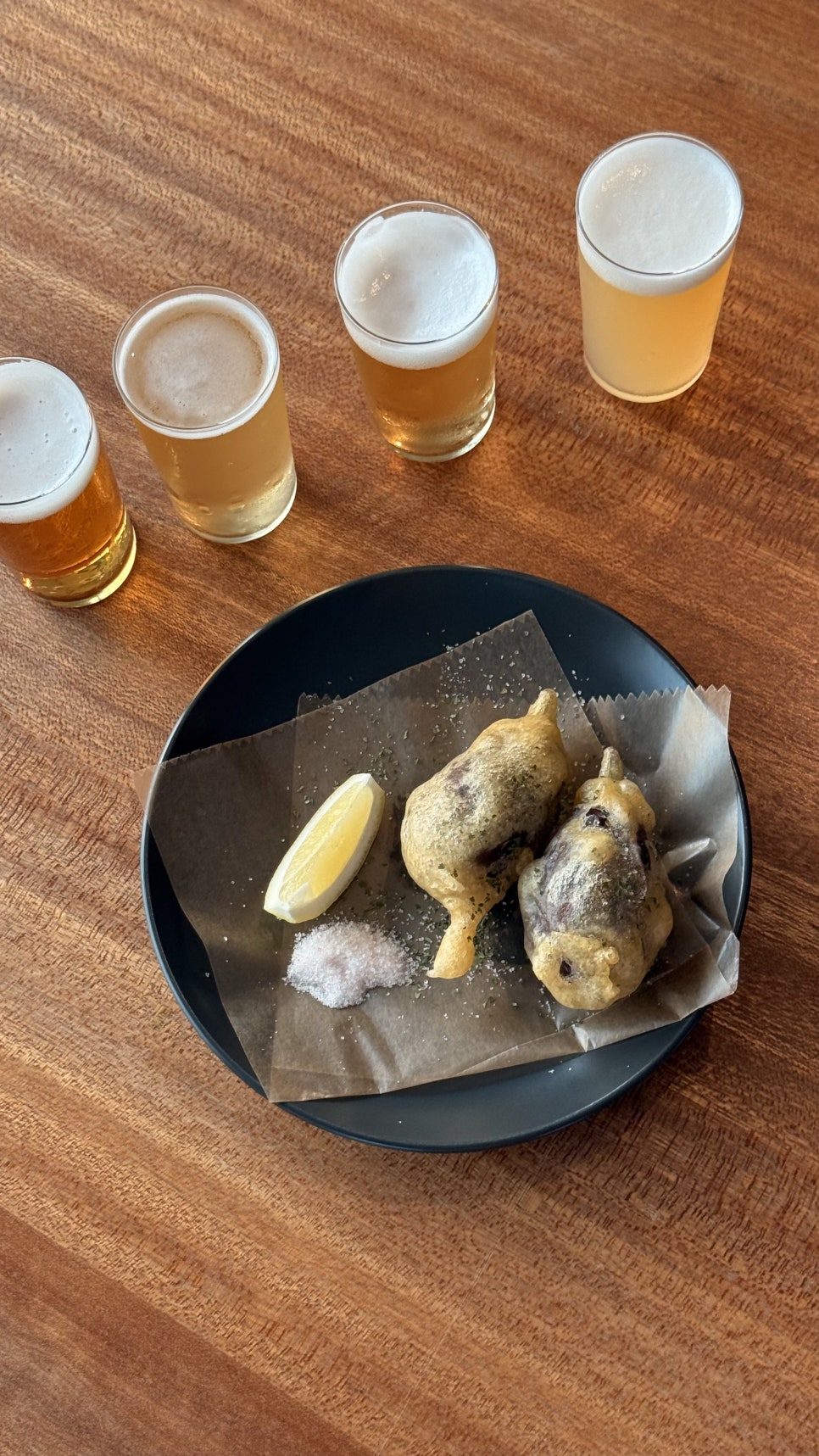 맥주의 씁쓸한 풍미와 바삭한 가지 튀김이 묘하게 잘 어울려서 계속 손이 갔습니다. 기름지지 않고 깔끔한 튀김이라 부담 없이 즐길 수 있었고, 와사비 간장 소스와 함께 곁들여 먹으니 더 감칠맛이 났습니다.