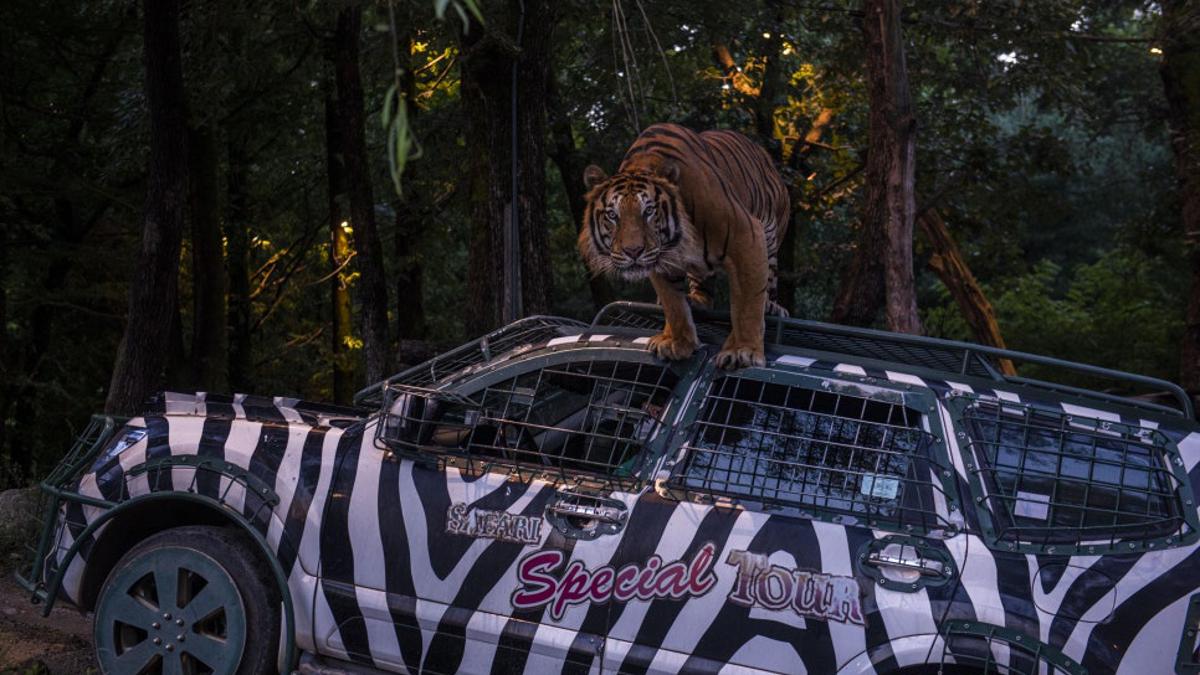 지난 5일 오픈한 나이트 사파리 트램은 약 20분간 호랑이, 사자. 불곰 등 7종 40여 마리의 맹수들이 서식하는 사파리월드를 야간 탐험하며 야행성 맹수들을 관찰할 수 있는 체험 프로그램이다.