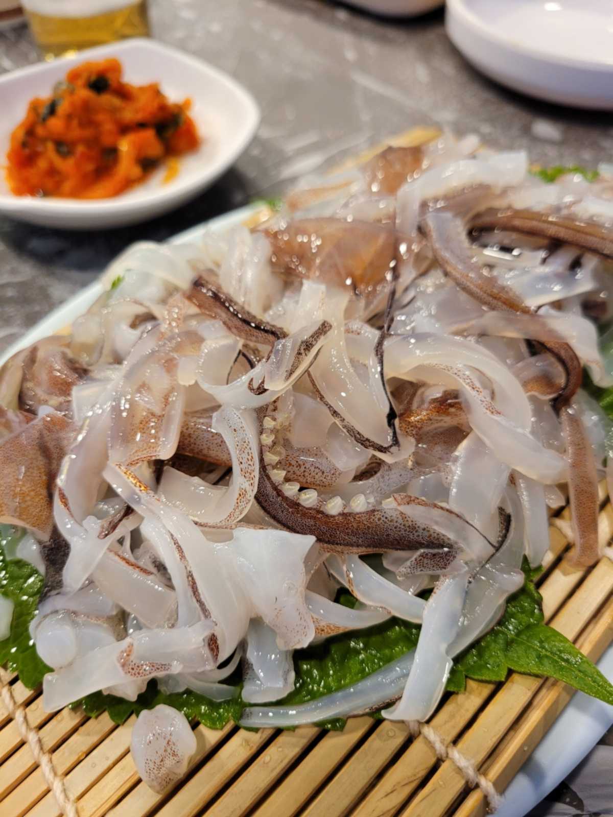 목포대교의 아름다움이 그대로 느껴지는 목포 ‘신비포차’. 시원하게 펼쳐지는 목포대교와 오션뷰로 야외에서 먹으면 바다에서 느낄 수 있는 감성이 제대로 느껴진다. 다양한 메뉴가 있지만 그중에서도 오징어회와 가리비 찜이 단연 인기 메뉴. 정갈하고 예쁘게 층층이 담겨 나오는 가리비 찜은 비리지 않고 통통한 식감이 일품. 당근과 양배추, 깻잎으로 플레이팅 해 다양한 색감을 낸 오징어 회는 비주얼뿐만 아니라 맛도 훌륭하다.