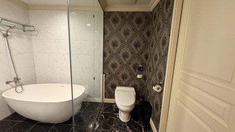 객실 내부는 전체적으로 깔끔했고, 생활형 호텔답게 주방과 세탁기 같은 편의 시설이 갖춰져 있었습니다. 장기 투숙객이나 가족 단위 여행객이 이용하기에도 적합하다는 생각이 들었습니다. 침구도 청결했고, 침대 매트리스가 푹신해서 푹 쉴 수 있었습니다. 다만 건물이 지어진 지 꽤 된 곳이다 보니 최신 호텔에 비해 인테리어가 약간은 클래식한 느낌이 있습니다. 하지만 관리가 잘 되어 있어 큰 불편함은 없었습니다.