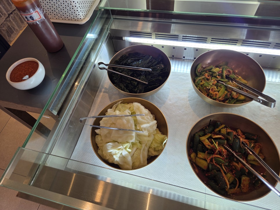 여기는 반찬을 다 먹어도 걱정없는 점은, 더 좋은 거는 반찬셀프바가 있다.그래서 셀프바에 가서 내가 먹고 싶은 반찬 그냥 가져오면 된다. 이런 시스템 최고야,,