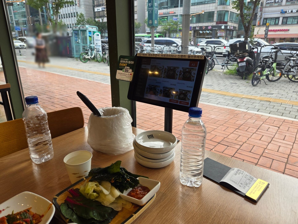 키오스크로 주문을 넣자마자 나오는 반찬 세팅.
