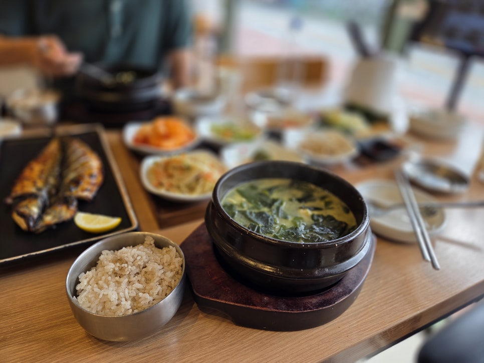 나는 가자미미역국,황태미역국,고등어구이 이렇게 3가지를 주문했는데, 미역국이 먼저 나오고, 그리고 그 이후에 생선구이가 나왔다. 생선은 주문과 동시에 구워서 시간이 좀 걸린다고..