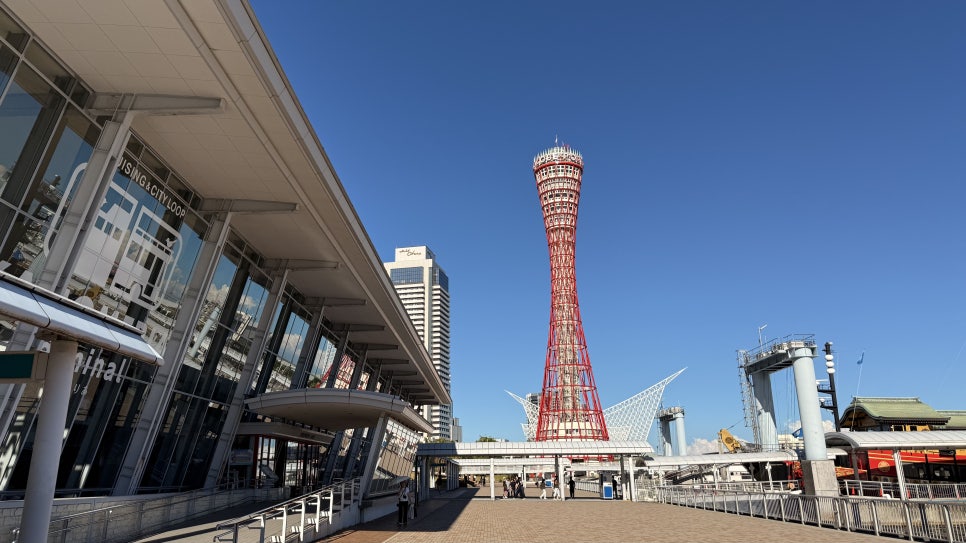 타워에 올라가기 전, 항구 주변을 천천히 걸어 보니 바닷바람이 시원하게 불어오고, 멀리 보이는 크루즈 선박과 건물들이 이국적인 풍경을 완성해 주었습니다. 포트타워 전망대에 올라서면 고베 시내는 물론이고 롯코산, 멀리 오사카 만까지 한눈에 조망할 수 있어 정말 시원한 뷰가 펼쳐집니다. 특히 해질 무렵 방문한다면 붉게 물드는 석양과 항구 야경이 어우러진 장면을 만날 수 있어 추천하고 싶습니다.