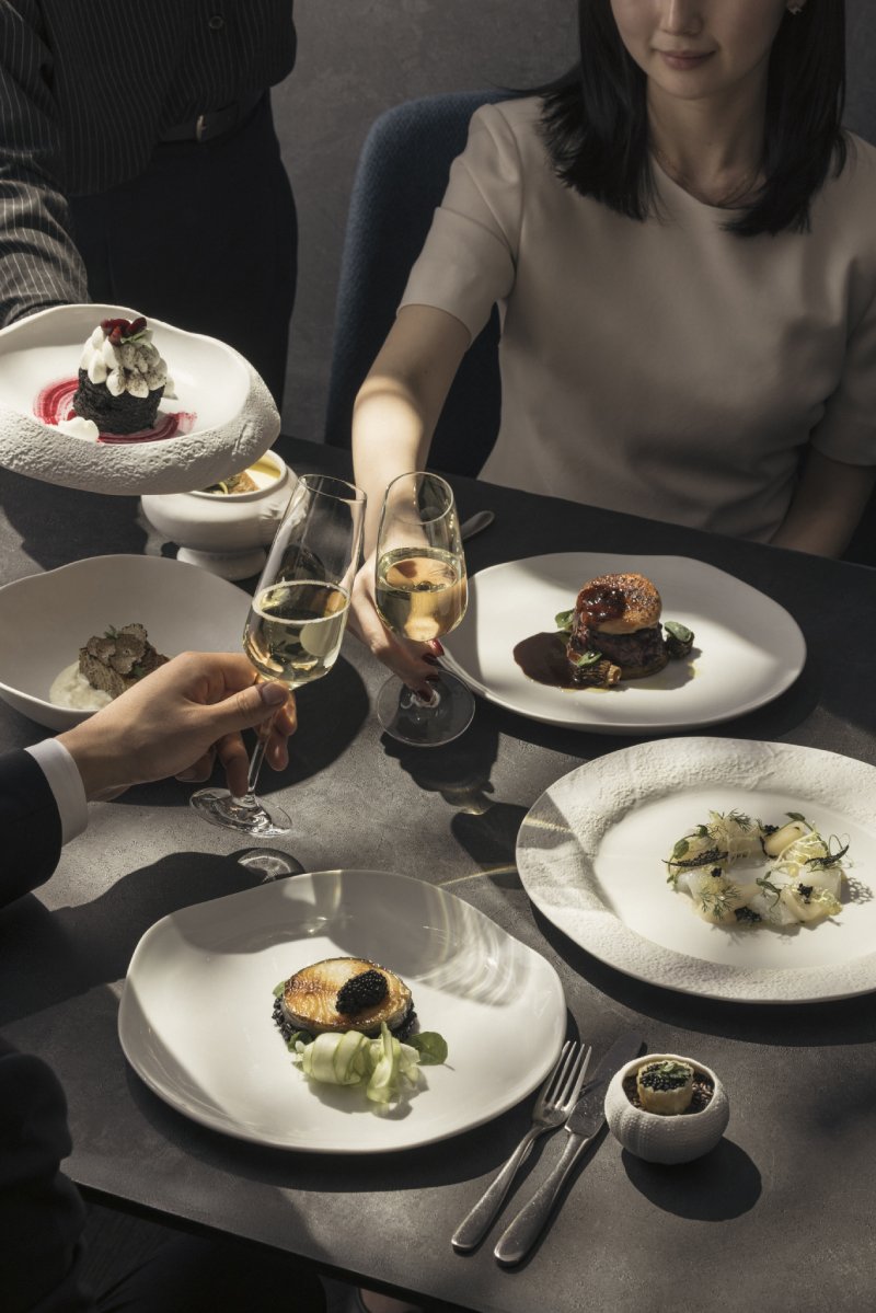 디너 코스는 총 다섯 가지로 구성한다. 셰프의 감각을 담아낸 한 입의 에피타이저로 무늬오징어와 관자를 활용한 크루도로 시작해 오세트라 캐비어와 이탈리아 스파클링 와인 프레시넷 프로세코, 랍스터 차우더 수프, 오징어 먹물 라비올리 등 깊고 풍성한 맛을 선사한다.