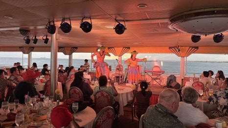 4층 규모의 대형 선박이지만 멀미를 하는 사람도 간혹 있을 수도 있으니 멀미약을 미리 챙기는 것이 좋겠다. 미쳐 준비하지 못했다면 출항 전 직원에게 요구하면 무료로 멀미약을 가져다준다. 저녁은 코스로 제공한다. 과일과 치즈 등 애피타이저는 뷔페식으로 되어 있어 직접 원하는 만큼 가져다 먹으면 된다. 샐러드를 시작으로 로브스터 1마리와 스테이크가 차례로 나온다.