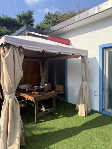 힐링 여행에서 빠질 수 없는 게 바로 바베큐 타임이죠. 펜션 내에는 개별 바베큐장이