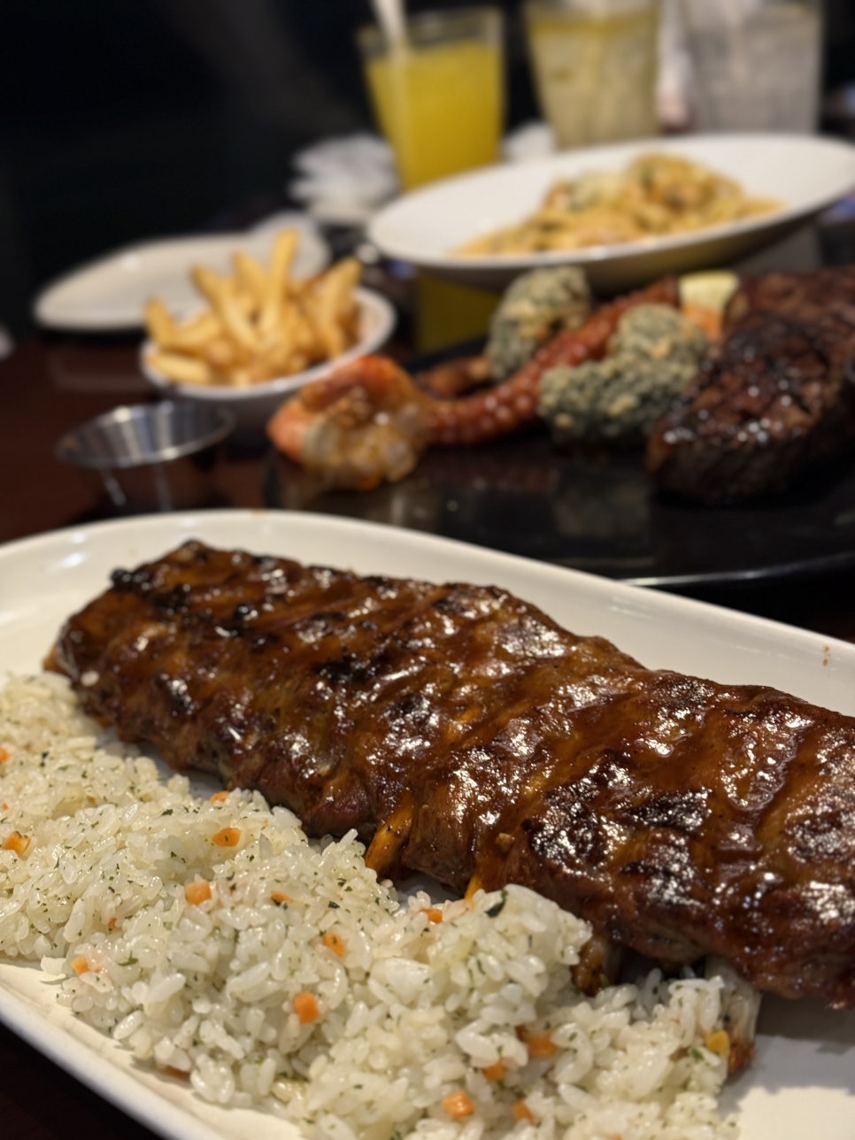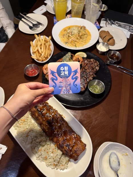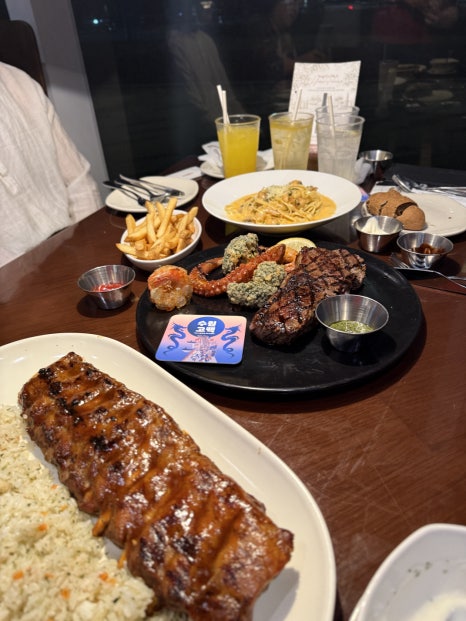 저녁에는 아웃백에서 스테이크와 와인 한 잔