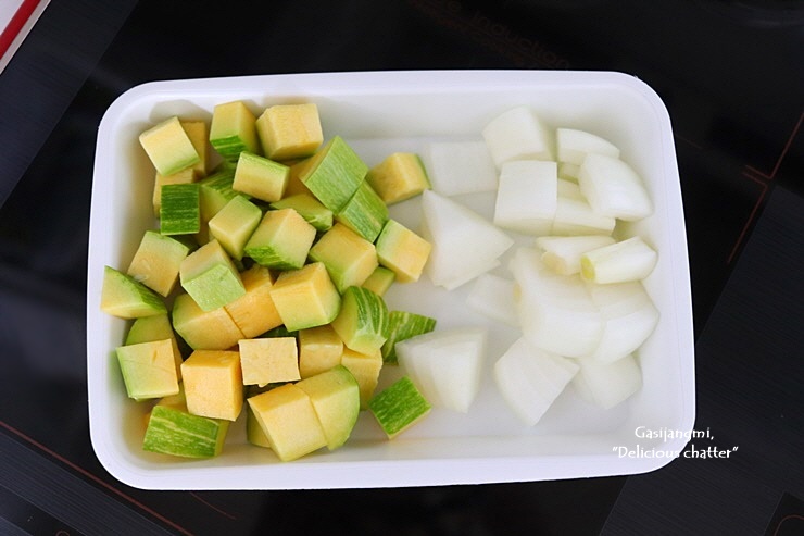 애호박과 양파는 비슷한 크기로 잘라주고