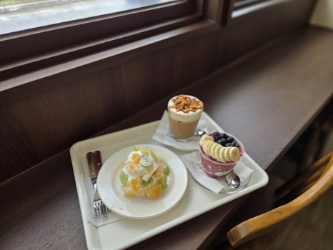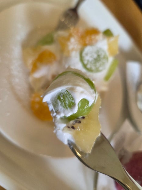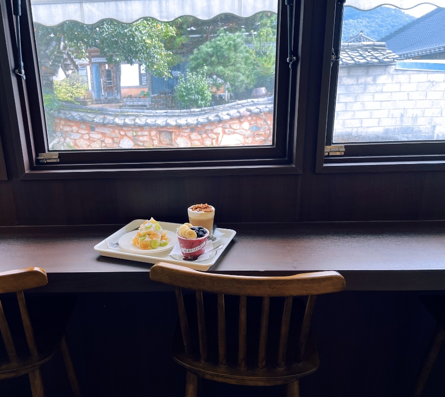 그리고 과일케이크는 귤과 샤린머스캣 그리고 골드키위 이렇게 섞여서 나왔다. 생크림 너무 맛있구요 ㅋ전주한옥마을생크림맛집 찾는다면 그냥 여기를 가세요 ㅎㅎㅎ