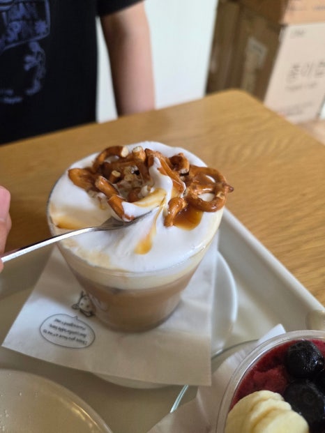 알포멜은..솔티카라멜아인슈페너 그리고 프레첼과 안데스소금이 들어가는 메뉴다. 무엇보다 풍성하게 생크림 얹어주셔서 너무 맛있어ㅠㅠ