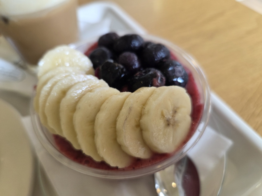아사이볼에는 바나나와 블루베리 그리도 그래놀라가 들어가는데. 나는 그래놀라 별로 안좋아해서 빼달라고 요청드림. 빼주셔서 감사합니다 ㅠㅠ